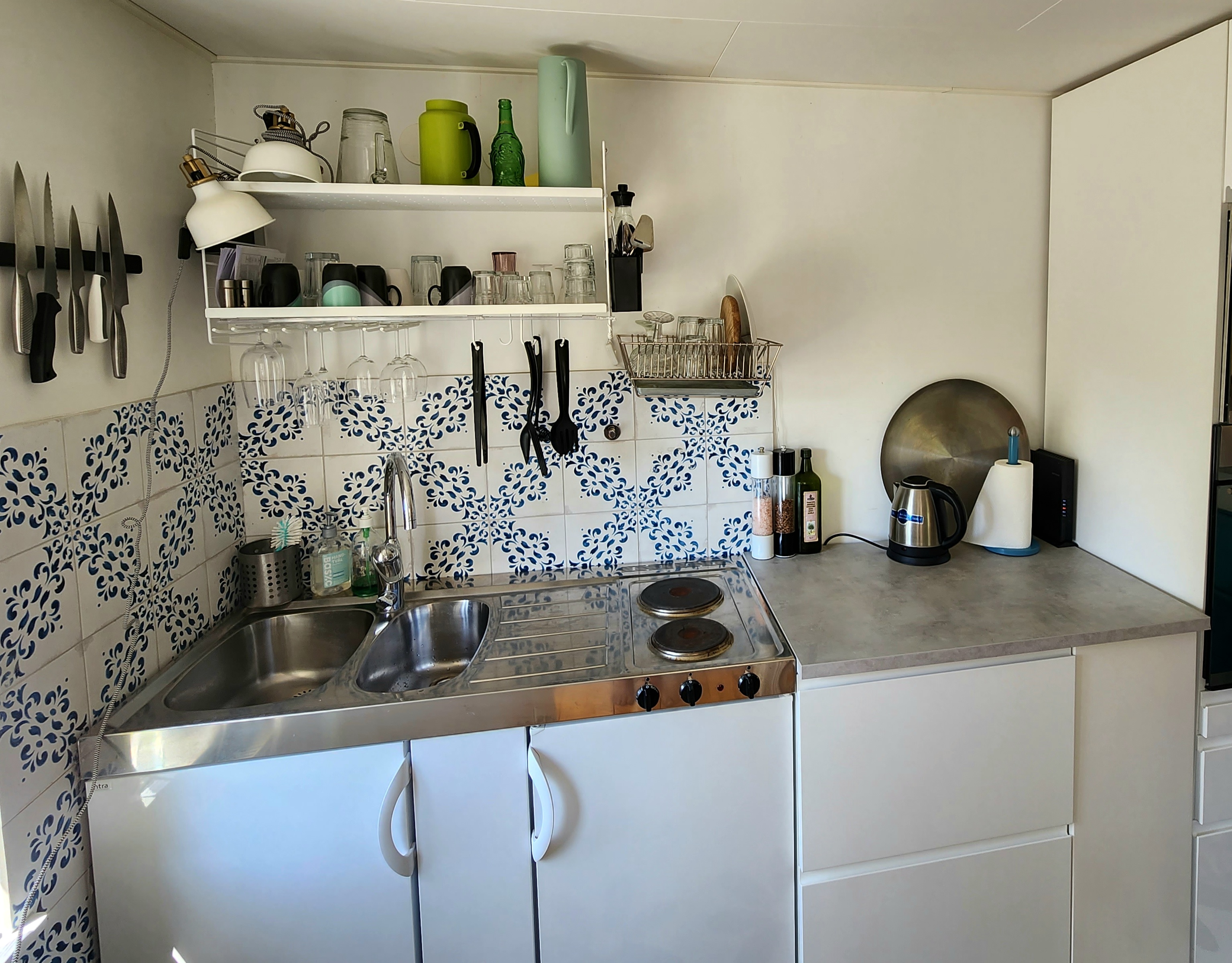 Studio Havsblick ligger utmed Skåneleden och har havsutsikt från uteplatsen. Boendet passar för en familj med fyra personer, två vuxna och två barn. Här finns kokmöjligheter, med två kokplattor, ugn, kyl med frysfack, mikrovågsugn, badrum och litet vardagsrum. Till studion finns också en uteplats med grill under sommarsäsongen. Frukost ingår inte.